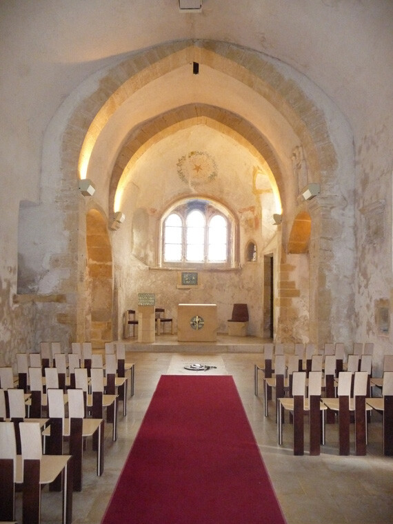 Face au Musée Robert Schuman, l'église fortifiée Saint Quentin, édifiée au XIIe siècle par les Pères de l'Abbaye de Gorze et, aujourd'hui, sépulture du Père de l'Europe, rappelle les aléas de l'histoire de la Lorraine qui est aussi celle de la France et de l'Allemagne, de l'Europe.